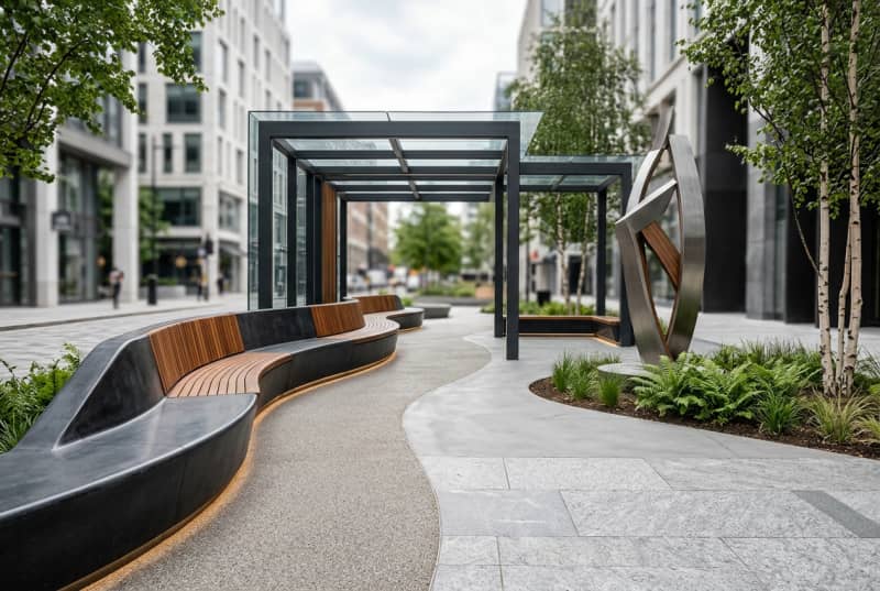 Leitfaden für Deutschland: individuell geplante Stadtmöbel, Lieferantenauswahl nach Haltbarkeit und Form, Wartung, Serienbeschaffung und Projektkoordination.